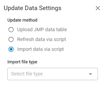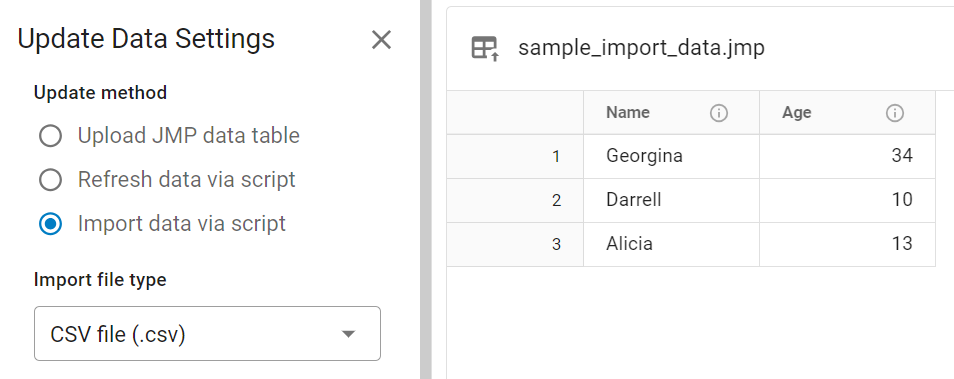 User can upload data that is not in a JMP format to JMP Live, which is converted into a JMP data table.