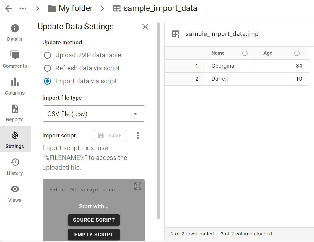 Tip: Before a user can import data, a Data Admin must set the update method and create a script. See Create an Import Script.