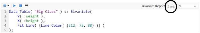 After you run a script, the elapsed time for each block is displayed in the upper right of the block.