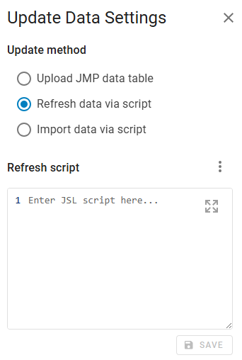 If you want to refresh data that comes from an external database and requires credentials, you can securely store those credentials in JMP Live.