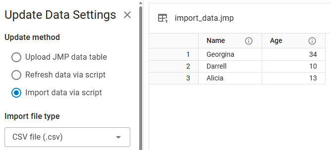 Tip: Before a user can import data, a Data Admin must set the update method and create a script. See Create an Import Script.