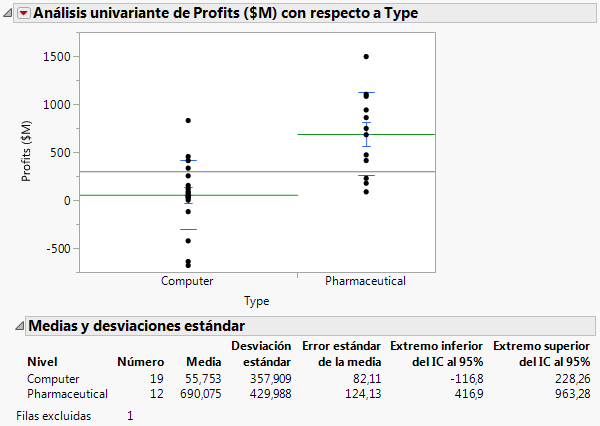Este ejemplo utiliza la tabla de datos Companies.jmp, que contiene datos financieros de 32 empresas de los sectores farmacéutico e informático.