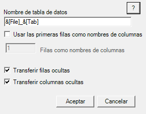 Acepte el nombre de la tabla de datos predeterminado (Nombre de archivo_Nombre de hoja de cálculo) o escriba un nombre.