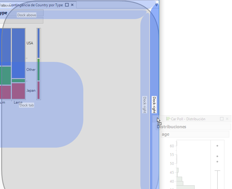 Arrastre la ficha del informe Distribución hacia la derecha hasta que aparezca la zona Dock right muy a la derecha.