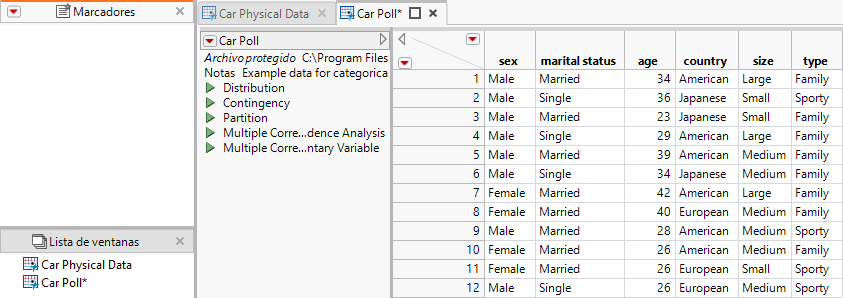 En Car Physical Data.jmp, ejecute el script Contingencia.