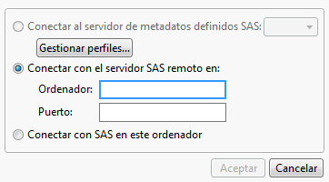En la ventana Conectar con el servidor SAS (véase la Figura 8.10), seleccione un método de conexión con el servidor SAS (si todavía no está conectado). En este ejemplo, seleccione Conectar con SAS en este ordenador.