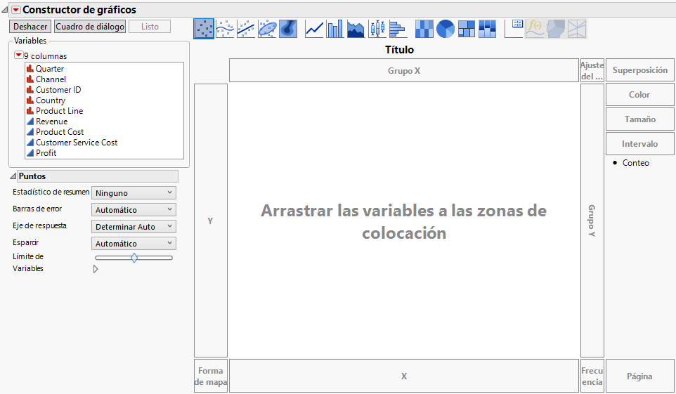 Nota: En esta sección solo se describen algunas de las características del Constructor de gráficos. Para conocer todos los detalles, consulte del libro Essential Graphing.