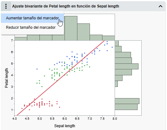 En los gráficos de dispersión e histogramas, puede cambiar el tamaño del marcador.