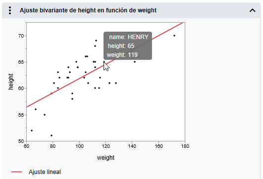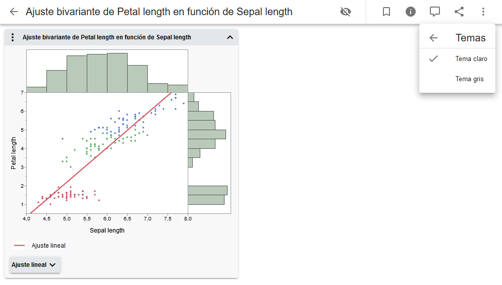 Las opciones de este menú pueden variar en función del tipo de gráfico o plataforma de JMP. Por ejemplo: