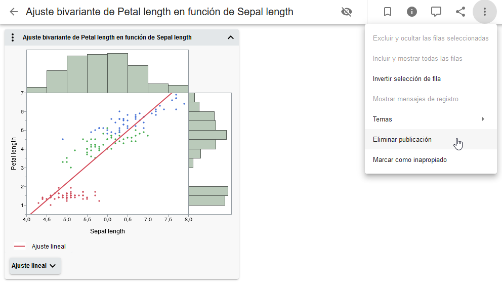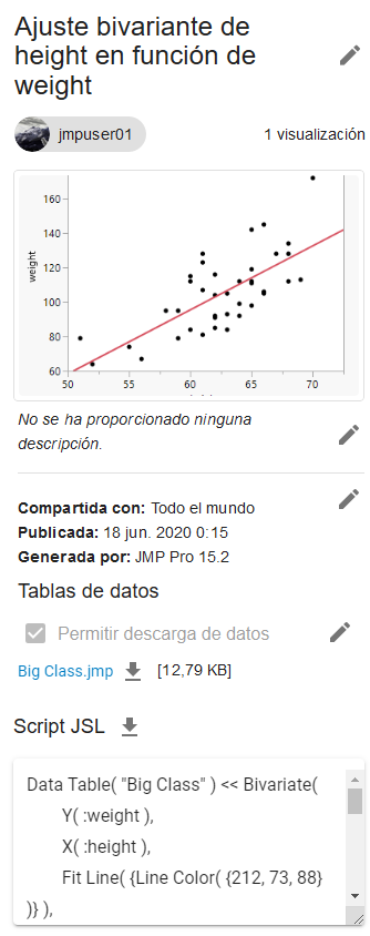 Figura 1.2 Ejemplo de una publicación de JMP Live