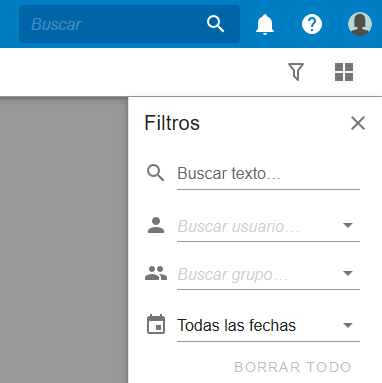Para eliminar un filtro de la búsqueda, debajo de la barra de búsqueda, haga clic en x junto a un nombre de usuario o Id. de publicación.