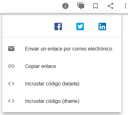 Compartir: (solo aparece en ventanas de navegador pequeñas o móviles; si no, aparece la barra de herramientas como icono Compartir