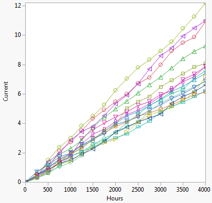 Gráfico de patrones de estrés Análisis > Confiabilidad y supervivencia > Daño acumulativo |
