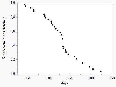 Gráfico de fallas Análisis > Confiabilidad y supervivencia > Supervivencia |