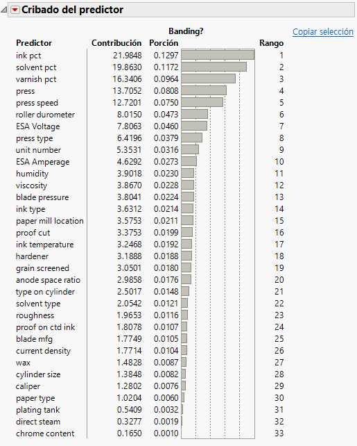 Cribado del predictor Análisis > Cribado > Cribado del predictor |