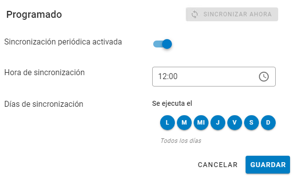 Para ver, activar o desactivar, editar o eliminar cualquier actualización de datos programada en JMP Live, haga clic en Administrador > Programaciones