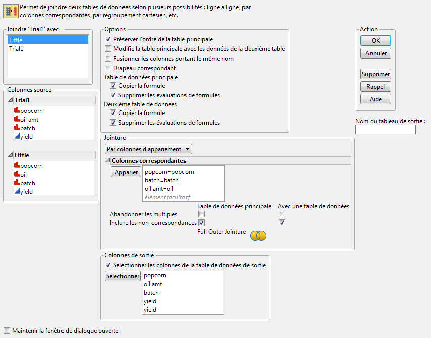 Pour éviter les doublons, sélectionnez l’option Sélectionner les colonnes de la table de données de sortie.