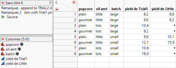 Choisissez Aide > Bibliothèque d'échantillons de données et ouvrez les fichiers Trial1.jmp et Little.jmp.