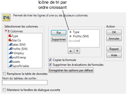 Pour l’instant, les deux variables sont paramétrées pour être triées par ordre croissant. Notez l’icône de tri par ordre croissant située à côté des variables dans la Figure 3.29.