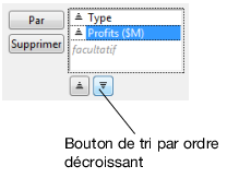 Pour trier la colonne Profits ($M) par ordre décroissant, sélectionnez Profits ($M) et cliquez sur la flèche vers le bas (tri par ordre décroissant).