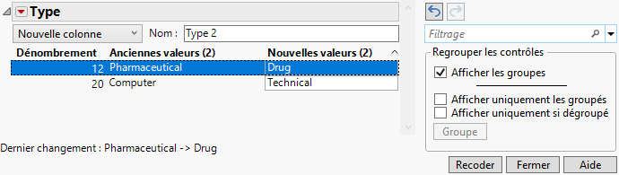 Sélectionnez la colonne Type en cliquant une fois sur son en-tête.