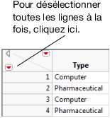 Vous pouvez également demander à JMP de trouver toutes les lignes qui répondent à certains critères.