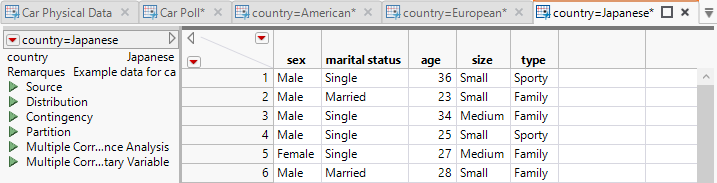 Dans le projet, sélectionnez l'onglet Car Poll.jmp.
