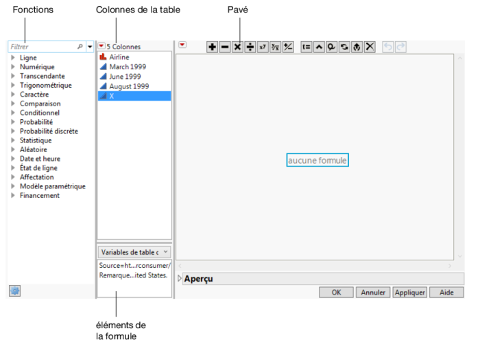 Cliquez avec le bouton droit sur l'en-tête de la nouvelle colonne et sélectionnez Formule. La fenêtre Éditeur de formules s’affiche.