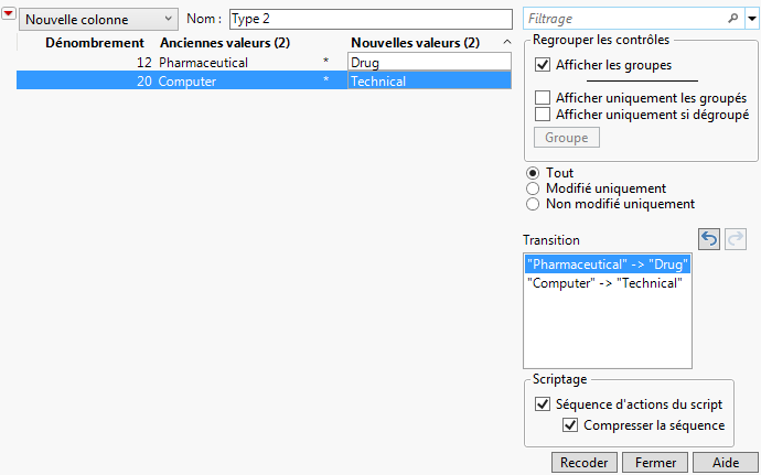 Sélectionnez Colonnes > Recoder.