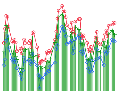 Voici les représentations d’une grande partie des graphiques que vous pouvez créer dans JMP. La plate-forme de création utilisée est systématiquement indiquée. Pour plus d'informations sur les plates-formes, ces graphiques et d'autres, consultez la documentation disponible dans le menu