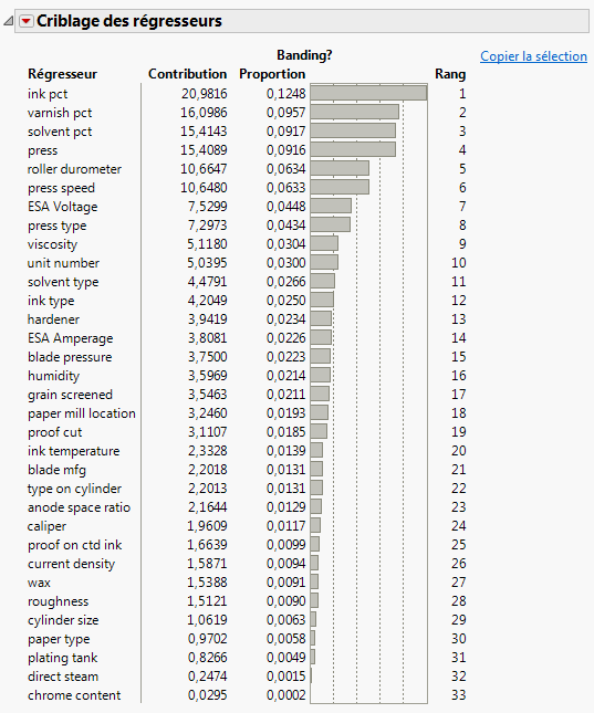 Analyse > Modélisation spécialisée > Modèles de plans d'expérience spécialisés > Criblage avec ajustement à deux niveaux