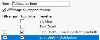 Dans la colonne Combiner, sélectionnez Birth Death - Bivariate of death by birth et Birth Death - Distribution.