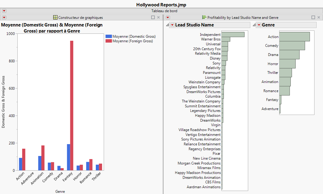 Pour plus d'informations sur la création de tableaux de bord, voir le chapitre Extend JMP dans Using JMP.