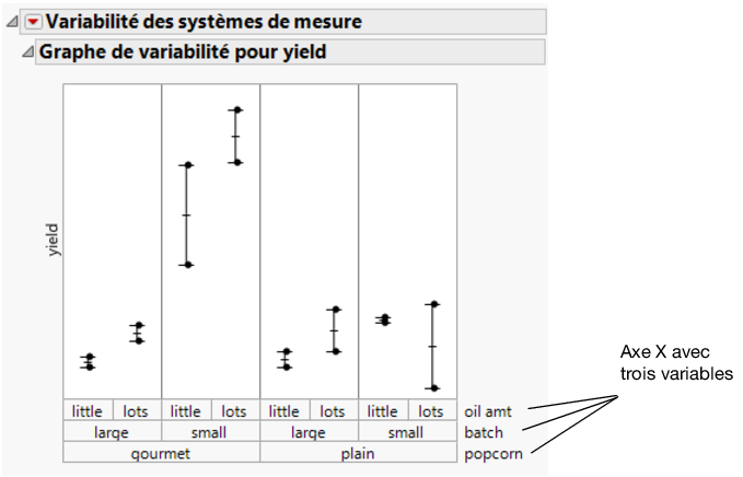 Remarque : L’ordre dans lequel vous affectez les variables au rôle X, Groupement dans cette fenêtre est important car il détermine l'ordre d'imbrication dans le graphe de variabilité.