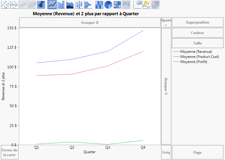 Cliquez sur Revenue, Product Cost et Profit, et faites-les glisser dans la zone Y pour les définir en tant que variables Y.