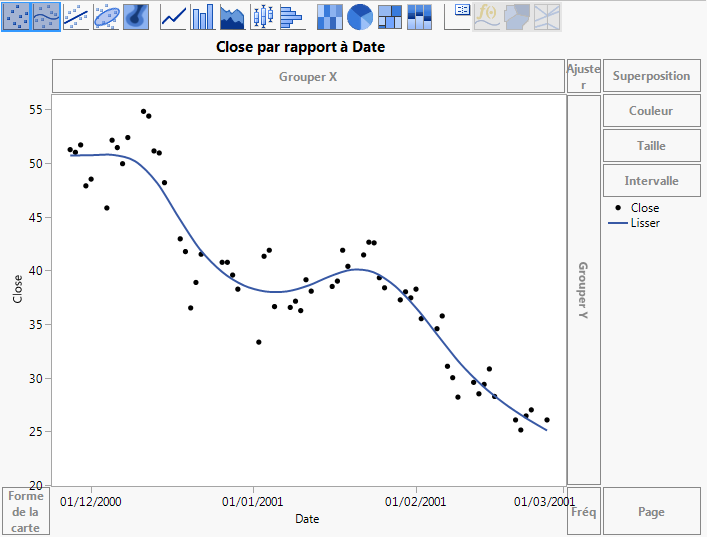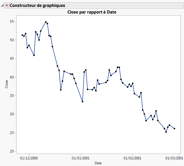 Cet exemple s'appuie sur la table de données Stock Prices.jmp, qui contient des données sur le cours d'une action sur une période de trois mois.