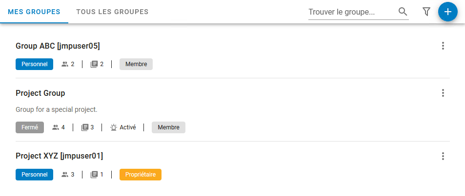 Vous pouvez également cliquer sur Groupes dans la barre de navigation et saisir un groupe dans Rechercher un groupe.