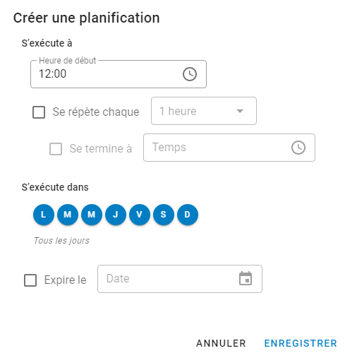 Remarque : Les planifications se basent sur le fuseau horaire de votre serveur JMP Live.