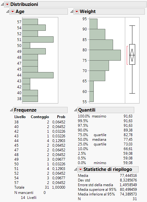 Sebbene Age e Weight siano entrambe variabili numeriche, non vengono trattate nello stesso modo. La Tabella 5.2 confronta le differenze fra i risultati di weight e di age.