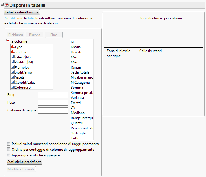 Creare tabelle di riepilogo utilizzando i comandi Riepilogo o Disponi in tabella. Il comando Riepilogo crea una nuova tabella di dati. Come con qualsiasi tabella di dati, è possibile eseguire analisi e creare grafici dalla tabella di riepilogo. Il comando Disponi in tabella crea una finestra dei report con una tabella di dati di riepilogo. È anche possibile creare una tabella dal report Disponi in tabella.