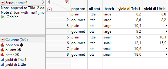 Fare clic su Trial1.jmp per fare in modo che sia la tabella di dati attiva.