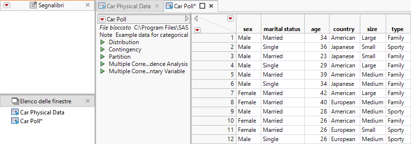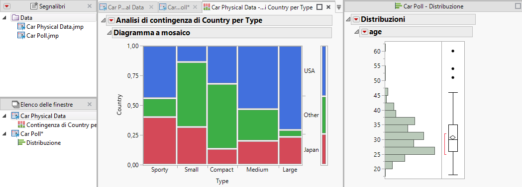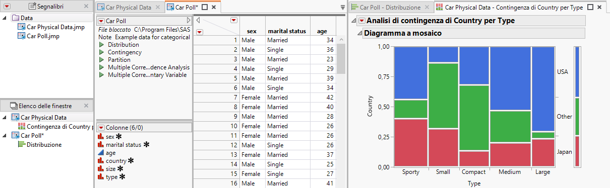 In Car Physical Data.jmp, eseguire lo script Contingency.
