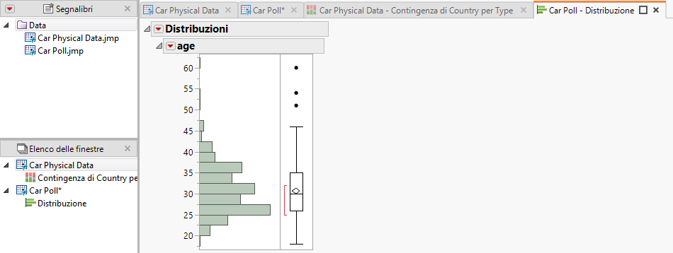 In Car Poll.jmp, eseguire lo script Distribuzione.