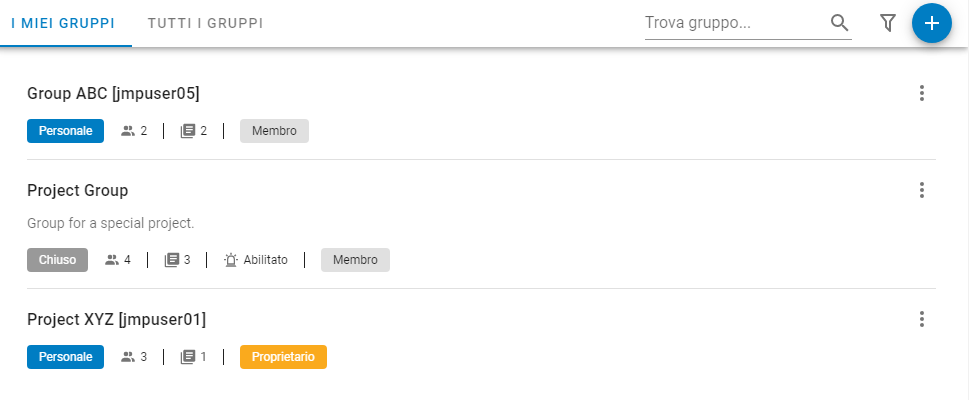 Si può anche fare clic su Gruppi nella barra di navigazione in alto e immettere un gruppo in Trova gruppo.