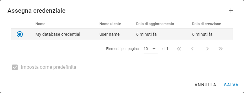 (Facoltativo) Fare clic su Imposta come predefinita per rendere disponibile la credenziale nello script di sincronizzazione.