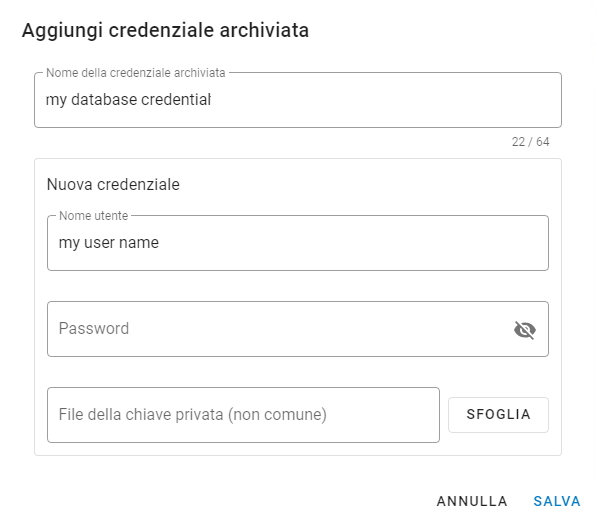 L'utente può gestire le tabelle di dati (aggiornare, caricare, sincronizzare, assegnare credenziali, creare uno script di importazione, impostare un calendario di sincronizzazione) nello spazio di lavoro o nella cartella.