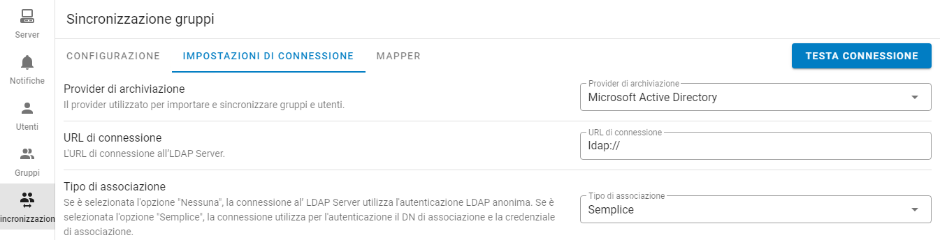 Impostare il nome del server SMTP da utilizzare per l'invio di e-mail.