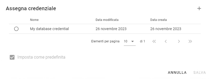 L'utente può gestire le tabelle di dati (aggiornare, caricare, sincronizzare, assegnare credenziali, creare uno script di importazione, impostare un calendario di sincronizzazione) nello spazio di lavoro o nella cartella.