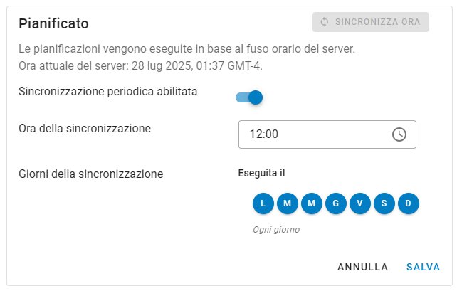 Gestione delle pianificazioni di sincronizzazione