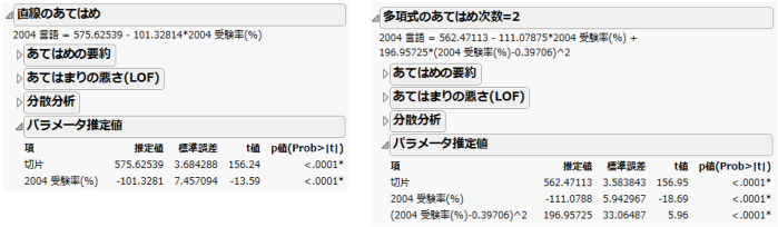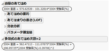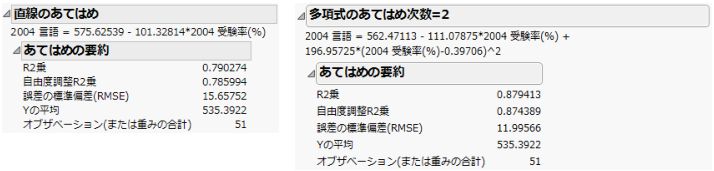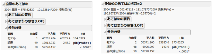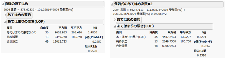 図5.10 直線と多項式の「あてはめの要約」レポート